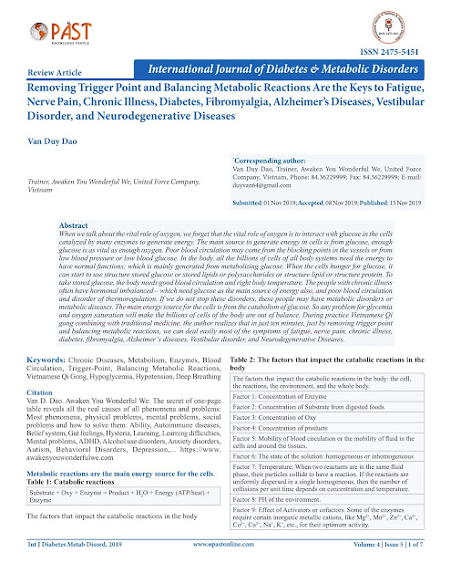 During the time of practicing, I always find these trigger points in the lungs of the practitioners even they are healthy by quick and slight punching on the back, and I make them feel better and healthier by continuous punching. The video in this writing also illustrates the way that I usually do.The health of the lungs also impacts the health of the heart, intestine, liver, kidneys, blood vessels and the billion cells in the body, so removing the forgotten trigger points in the lungs we can make all the body in a good shape. By doing so, we can simply cure a chronic cold, cough, asthma, bronchitis, pneumonitis, COPD, chest pain, difficulty breathing, tonsillitis, and rhinitis.Combining with the other techniques I described in my articles, “The Cause and Possible Cure for Cancer and Chronic Diseases from Applying Papaya Leaf Juice, Baking Soda, Aspirin, Sugar, Temperature, Vietnamese Qi Gong Breathing, Exercise, Metabolism, and Traditional Medicine“And “Removing trigger points and balancing metabolic reactions are the keys to fatigue, nerve pain, chronic illness, diabetes, fibromyalgia, Alzheimer’s diseases, vestibular disorder, and neurodegenerative diseases“. we can remove all the trigger points in the body, in other words, we can heal most chronic diseases in a short time.