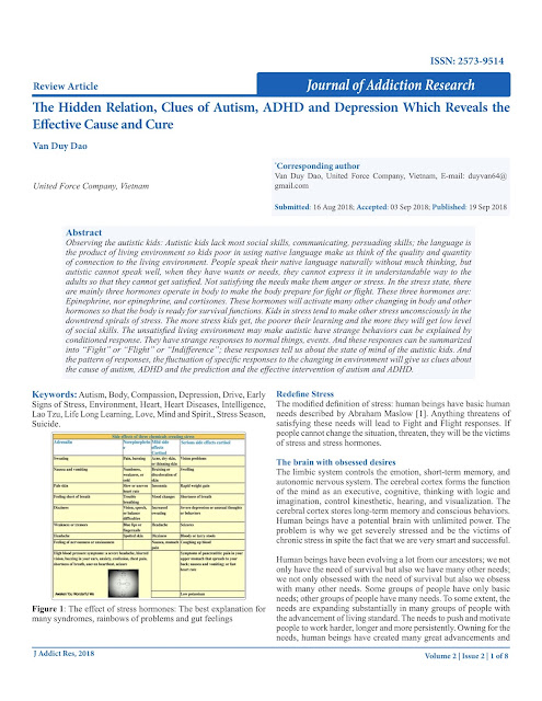 4. Van D. Dao. (2019, September 19). The Hidden Relation, Clues of Autism, ADHD, and Depression Which Reveals the Effective Cause and Cure. Journal of Addiction Research. J Addict Res, 2018.