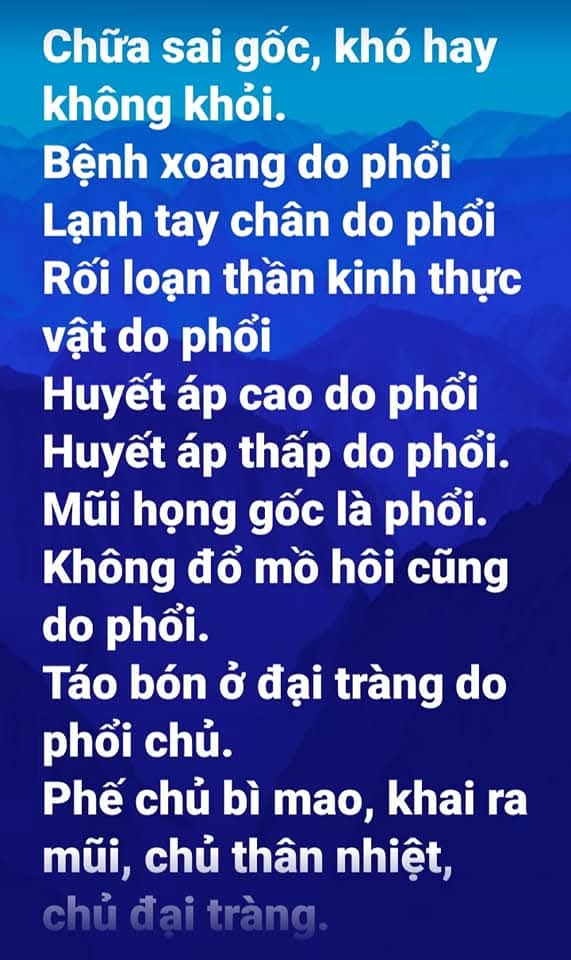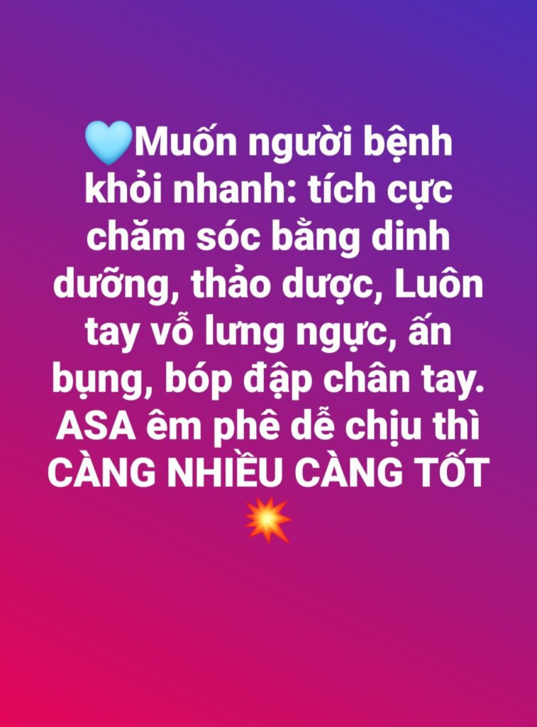 Có một thứ mà lương y dấu không nói, bác sĩ dấu mà họ vẫn làm, thu tiền. Thậm chí không nhắc bệnh nhân, người nhà bệnh nhân làm. Nhiều người nhà mà biết thì bệnh nhân sẽ khỏe nhanh, đó là vỗ: vỗ lưng, vỗ ngực, vỗ rung, vỗ phổi, vỗ đờm (thuật ngữ y học) tự trung là vỗ: dùng tay vỗ vô lưng, ngực.