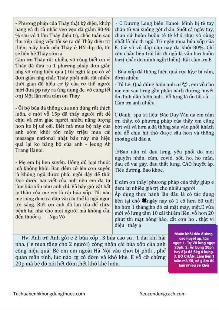 Hôm qua chị dùng búa xốp đập phần lưng cho bạn bị giãn phế quản ấy khoảng 30 phút. Làm xong bạn ấy thở được sâu hơn, sáng nay khoe cả đêm em ngủ rất ngon không bị mất ngủ như mấy hôm trước, ngủ luôn một giấc đến sáng. Giờ bạn ấy tin và yêu cây búa rồi. /-heart /-heart /-heart