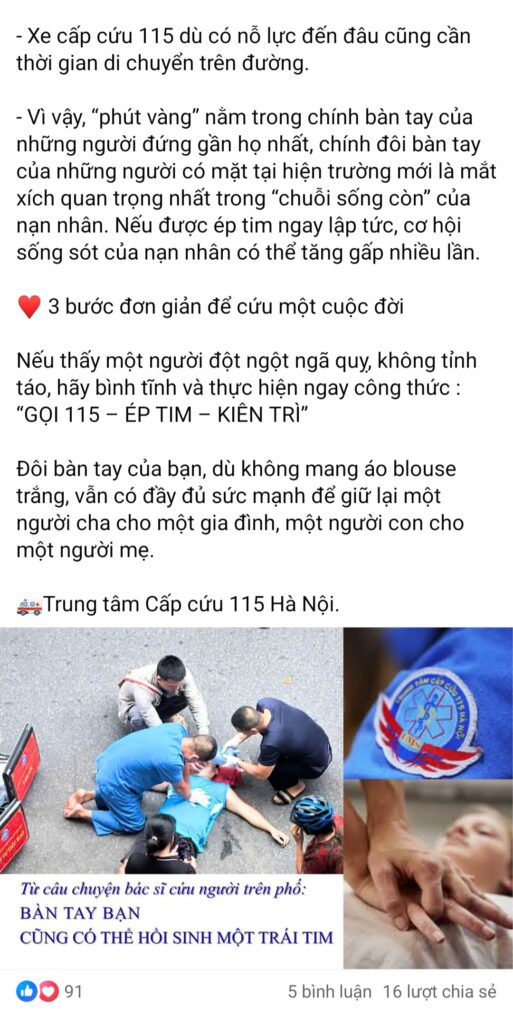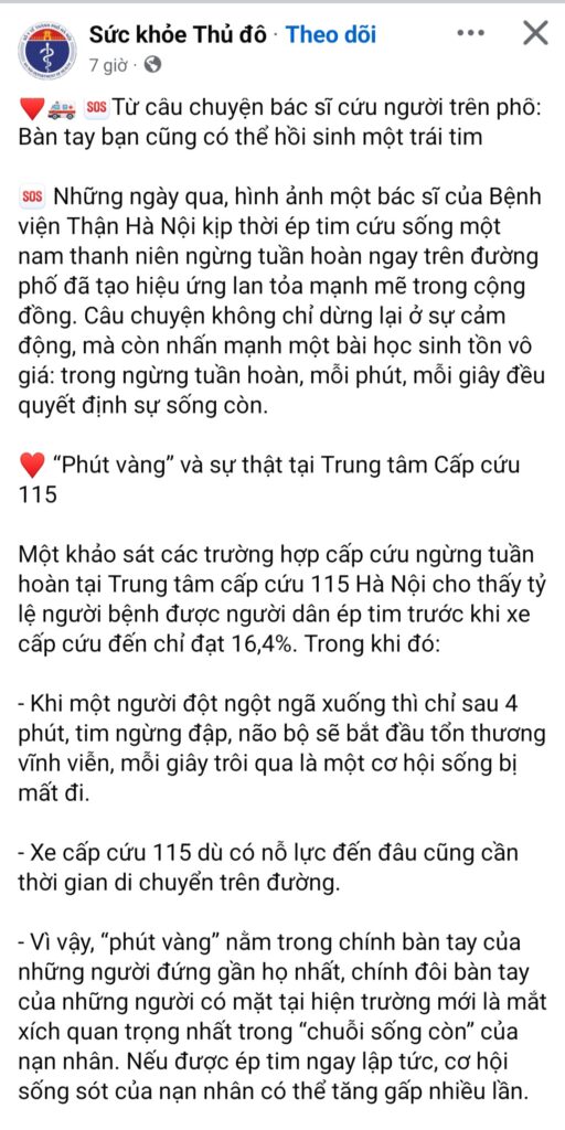 Thời điểm vàng của ép tim phổi- hồi sức TP là ngay khi bị ngừng, nghẹt ngực. Ép nhịp giống đập, vỗ. Cứu người Vỗ cũng ngay khi bị. Mà Vỗ dễ, an toàn, Thời gian vàng của vỗ là mọi lúc RẢNH💥