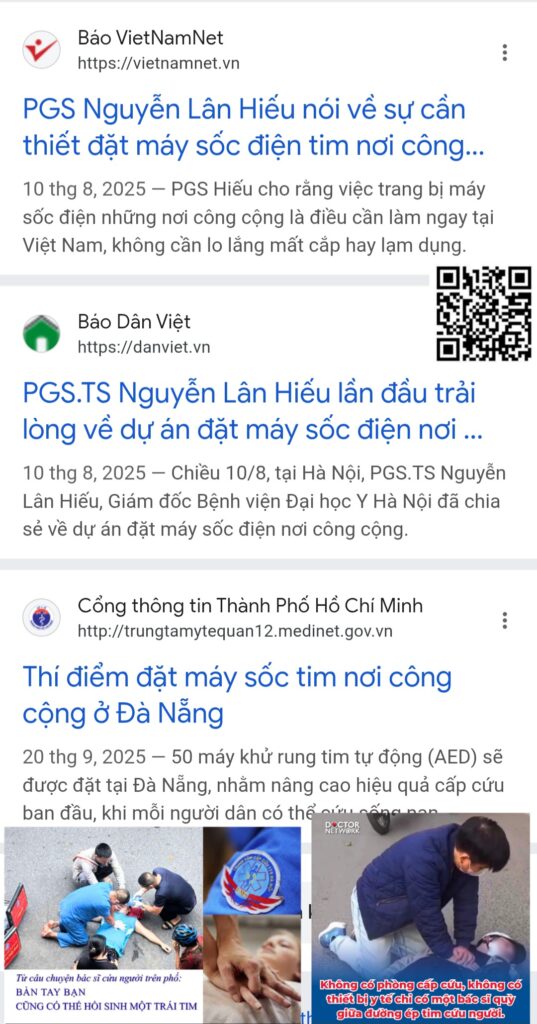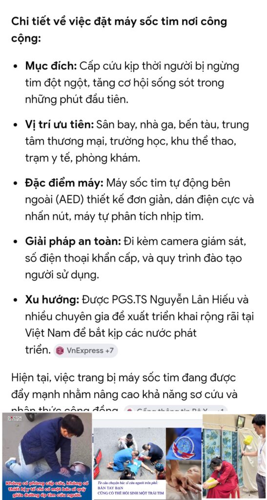 Kiểu như ekip tướng tá chính quy USA quỳ lạy cách làm du kích của Vn. Không hiểu sao xí xí nhồi đó, không đồng, không thuốc mà hồi sinh người chit (đã ngừng tim). Dạ, ép ngực không cần bằng cấp lắm, không cần tới đại học chứ chưa nói tới cần cỡ giáo sư, tiến sĩ, với máy sốc tim trăm triệu. Trung cấp hay dân tự làm được. BÁC HIẾU chỉ đạo dạy dân, bác Bình chi xí tiền thì khỏi cần đặt máy sốc tim nơi công cộng nha. Không ai biết dùng máy sốc đâu mà đặt. Vỗ nhồi ấn 5 dòng hướng dẫn là bác xe ôm, cô ve chai, bà vé số, e học sinh làm cũng được.
